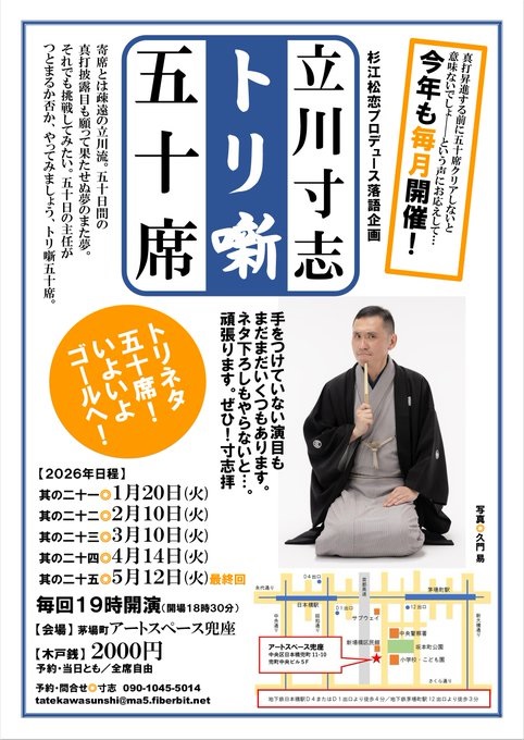 立川寸志「寸志のお蔵出し!第2回」 ※配信あり
